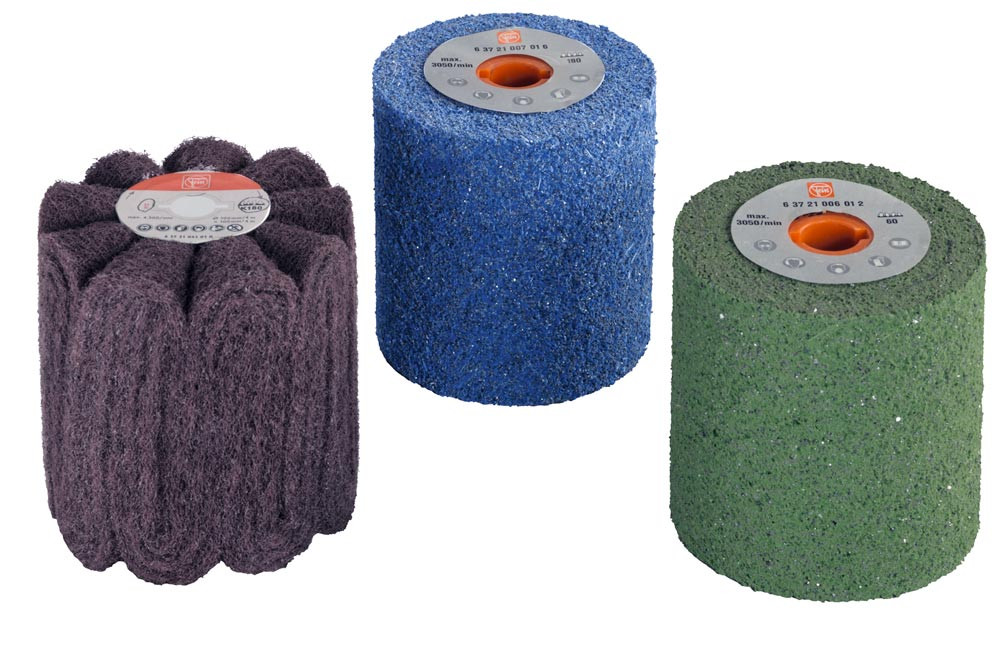 Fläche Satinieren Set: Für perfekten, ansatzfreien Satinschliff ∙ 2 Elastische Schleifwalze K 60/K180 und Schleifvlieswalze Sinus K180