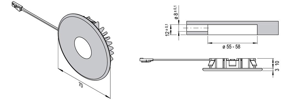 Einbauleuchte mit hochwertiger Edelstahloberfläche · 2 mm Randhöhe · Einbaubohrung 55-58 mm · dimmbar mit stufenlos regelbarer Farbtemperatur durch Emotion Technologie · Lebensdauer 30000 h · Schutzart IP20 · Abstrahlwinkel 35° · diese Leuchte enthält eingebaute LED-Leuchtmittel · Energieeffizienzklasse F · Ohne Emotion Steuerung leuchtet die LED warmweiß. Mit der Emotion Adapterleitung 6432099 leuchtet sie kaltweiß (nicht im Lieferumfang enthalten).