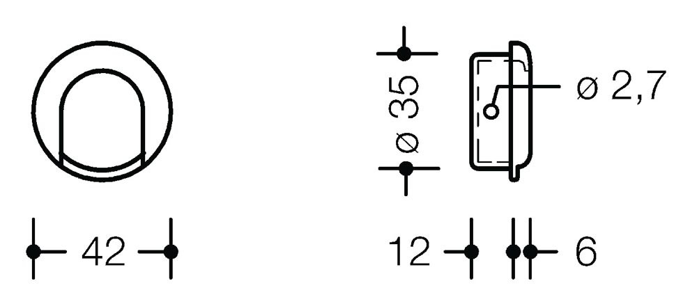 aus durchgefärbtem, mattem Polyamid · Durchmesser 42 mm, 18 mm hoch · Einlasstiefe 12 mm · mit Griffmulde von unten offen