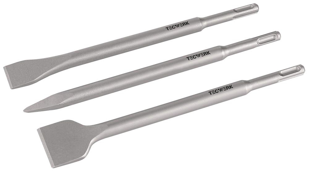 geeignet für alle Maschinen · Inhalt: je 1 Spitz-Meißel, Flach-Meißel, Spat-Meißel
