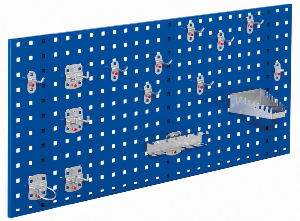 Einsteigerset, bestehend aus 1 Lochplatte 1000x450 mm und 15-teiligem Werkzeughaltersor timent, RAL 5010 E854321