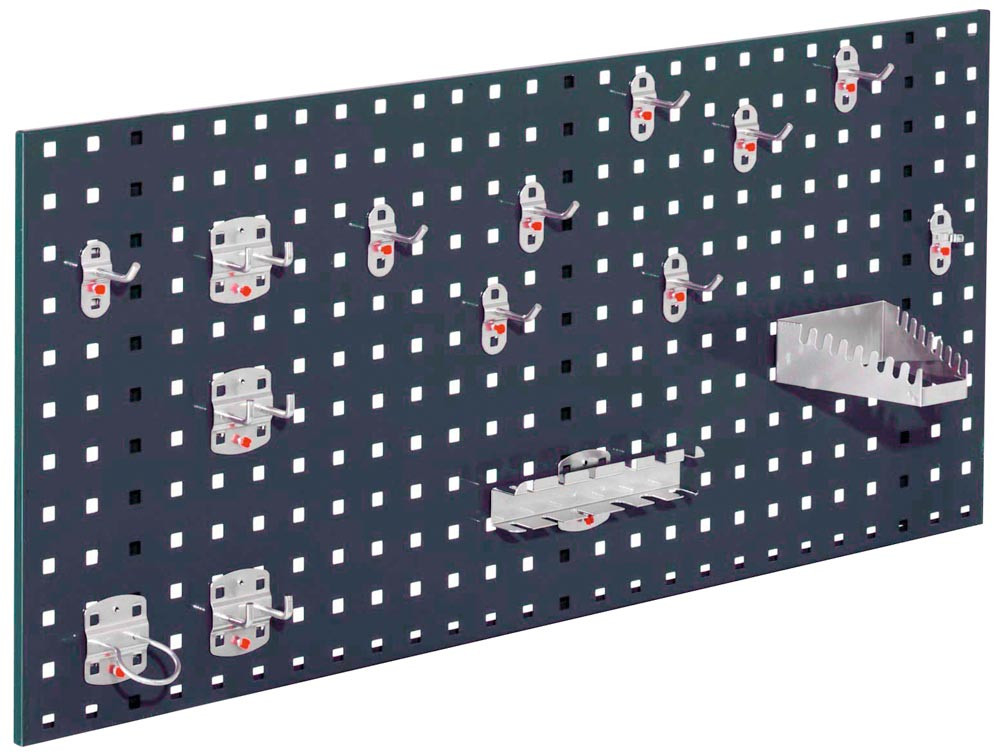 Einsteigerset, bestehend aus 1 Lochplatte 1000x450 mm und 15-teiligem Werkzeughaltersor timent, RAL 5010 E854321