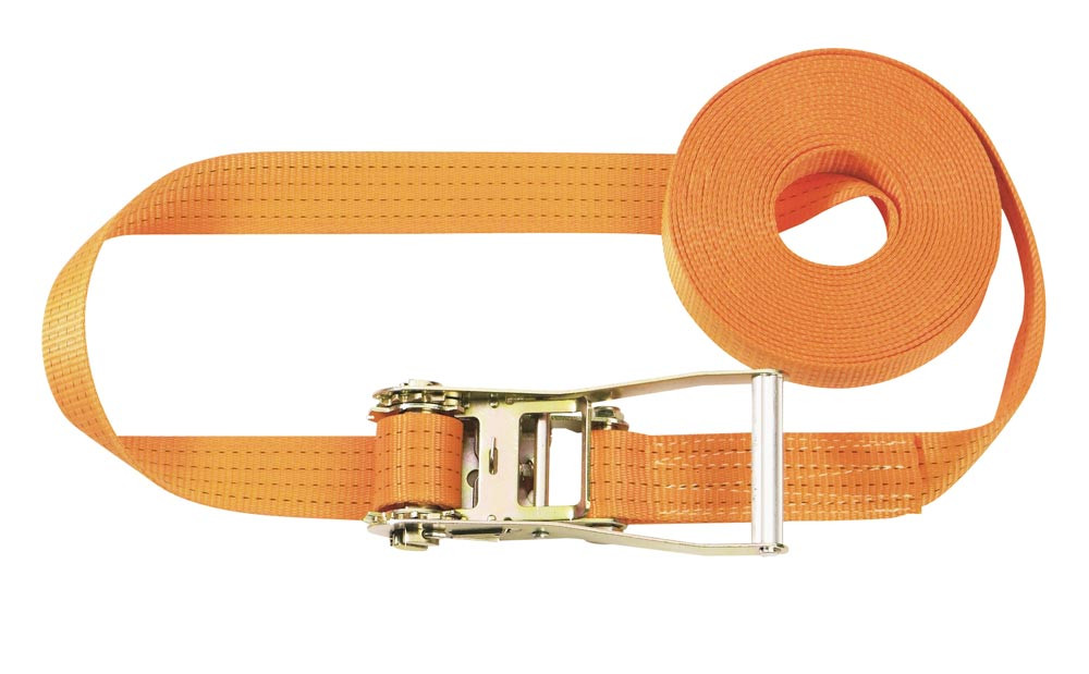 Einteiliger Zurrgurt, 4000 daN zul. Zugkraft in der Umreifung, Gurtbreite 50 mm, Länge 10 m, Farbe orange, 4 Streifen, VE 2 Stück