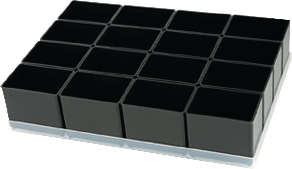 ESD Einsätze als Set (auf praktischem Tablar) für die Aufteilung der ESD Schublade 250-3, Art.-Nr. 6438790 und ESD Assorter 55 4x8-0, Art.-Nr. 6438795 · hergestellt aus antistatischem ESD-Polypropylen
