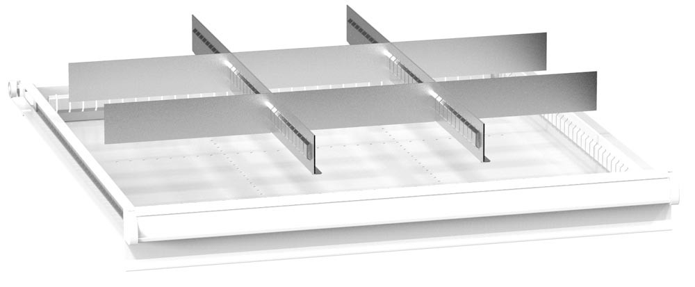 Einteilungsmaterial-Set, 2 Schlitzwände, 6 Trennbleche, für FH 75 mm, passend für Gehäusegröße BxT 731x753 mm E1613796