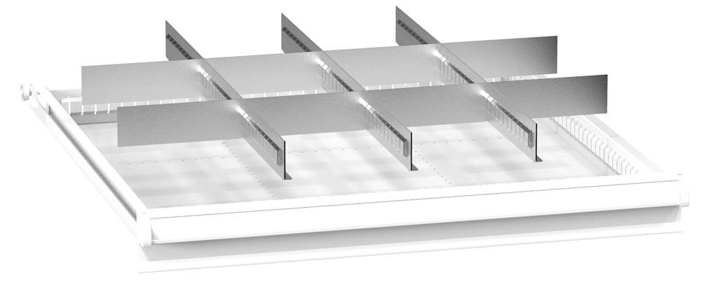 Einteilungsmaterial-Set, 3 Schlitzwände, 8 Trennbleche, für FH 100/125 mm, passend für Gehäusegröße BxT 731x753 mm