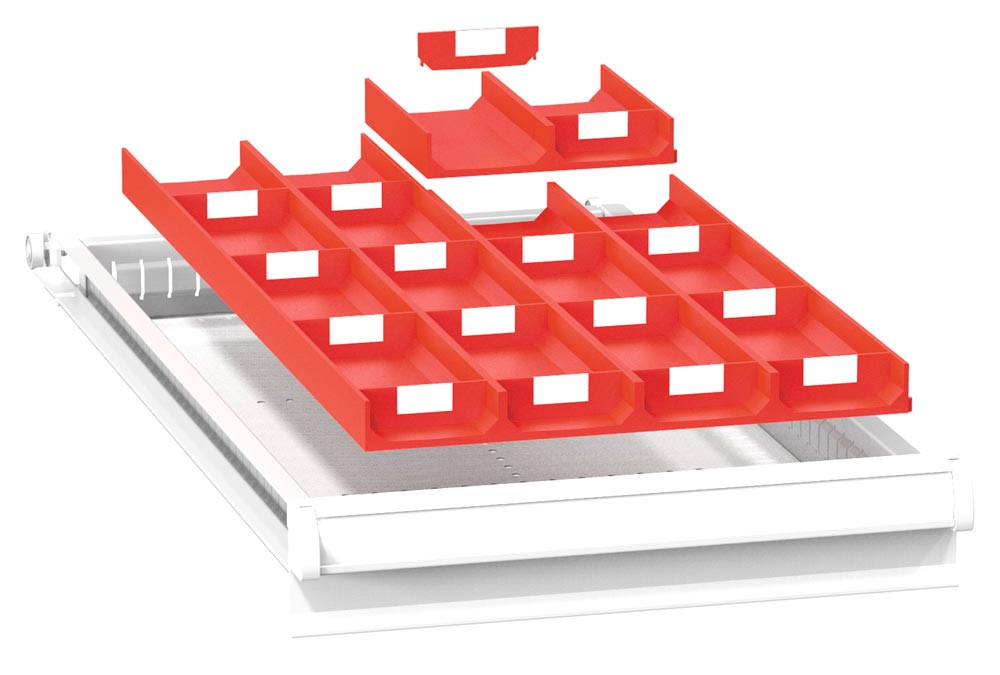 Einteilungsmaterial-Set aus Kunst., 28 x 2-teilige Mulden, 153x153x28 mm, 56 Trenneinsätze, Muldenbreite 70 mm, passend für Schublade BxT 1190x780 mm
