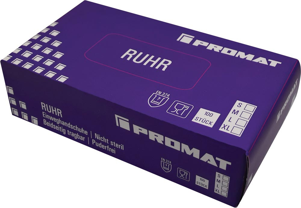 Einweghandschuhe Ruhr Größe M blau Nitril EN 374 PSA-Kategorie III 100 Stück / Box E6010140