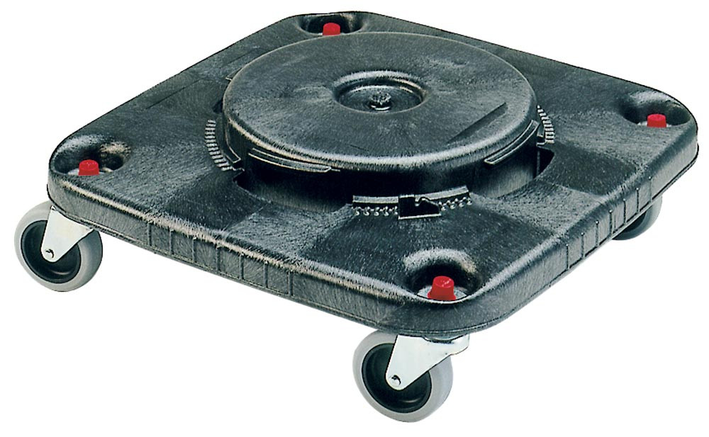 · Aus stabilem schwarzem Polyethylen · 4 Lenkrollen für leichtes Handling · Spurlose Gummibereifung · Traglast 226 kg · Die Kunststofftonnen werden fest mit dem Fahrwagen verbunden, um auch schwer befüllte Behälter sicher zu transportieren