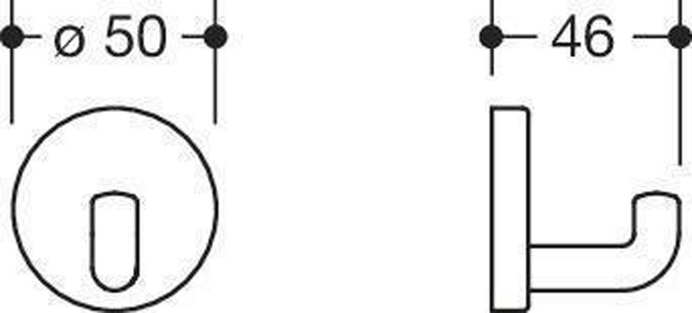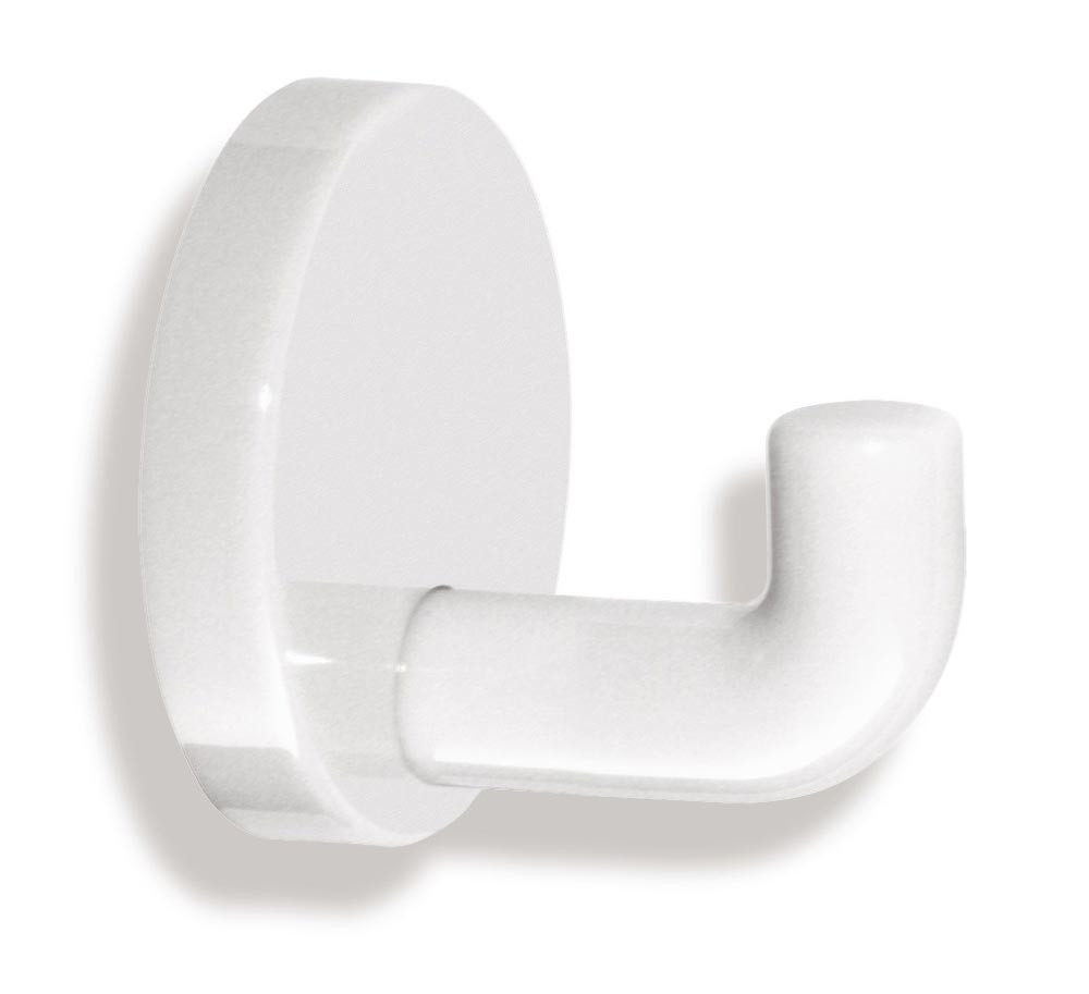 kleiner, rechtwinklig gebogener, zylindrischer Haken mit Befestigungsrosette · geradlinig und funktional in einer einfachen und zeitlosen Formensprache gestaltet · der Haken dient zum Aufhängen von Wäschestücken und anderen Utensilien · leicht zu reinigen · diebstahlgeschützt durch verdeckte Verschraubung · 45 mm tief, Rosettendurchmesser 50 mm · aus hochwertigem Polyamid in ausgewählten HEWI Farben