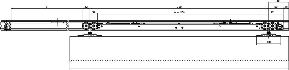 Lieferumfang: 2x Rollenwagen mit Dämpfereinheit, 2x Endanschlag, Auslöser mit Befestigungsschraube, 2x Aufhängeplatte Standard