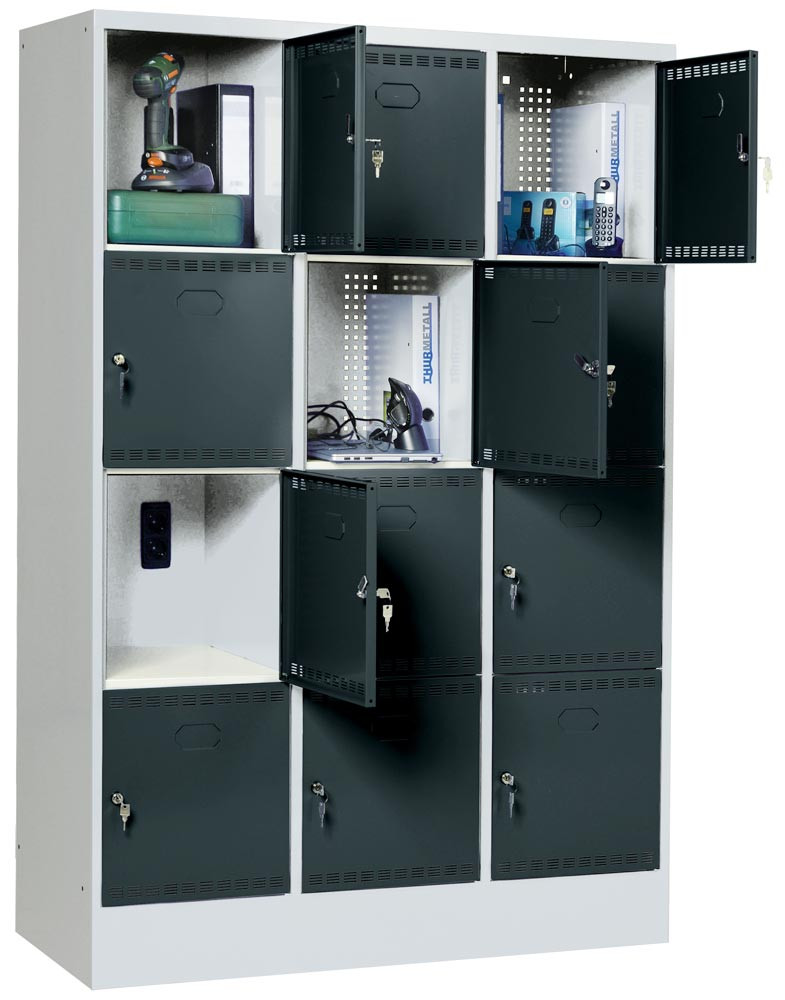 Elektro-Fächerschrank, BxTxH 1205x582x1795 mm, 12 Fächer, Abteil-BxH 400x400 mm, RAL 7035/7016 lichtgrau/anthrazit