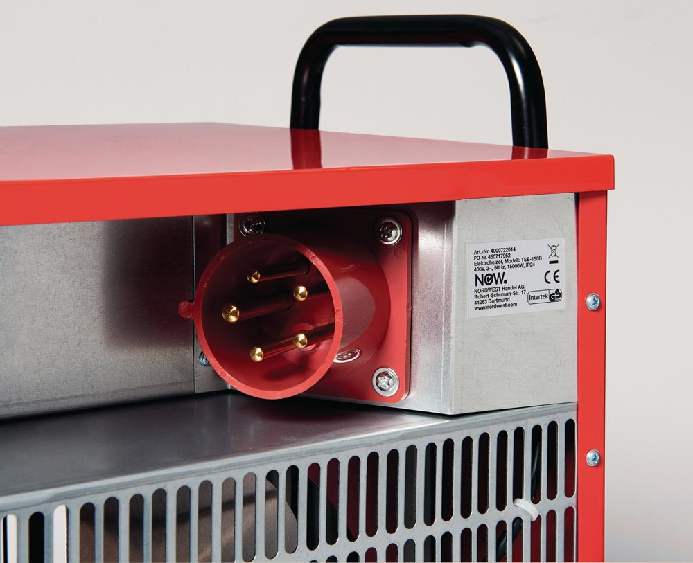 für die Beheizung von Lager- und Werkhallen, Garagen, Baucontainern etc. · pulverbeschichtetes Stahlblechgehäuse · stufenloser Thermostat und kräftiger Ventilator für gleichbleibende Temperatur · Heizelemente rostfrei · Überlastschutz durch Thermoschalter verhindert Überlastung · 2 bzw. 3 Stufenschalter für verschiedene Heizstufen · Anschlussleitung nicht im Lieferumfang enthalten