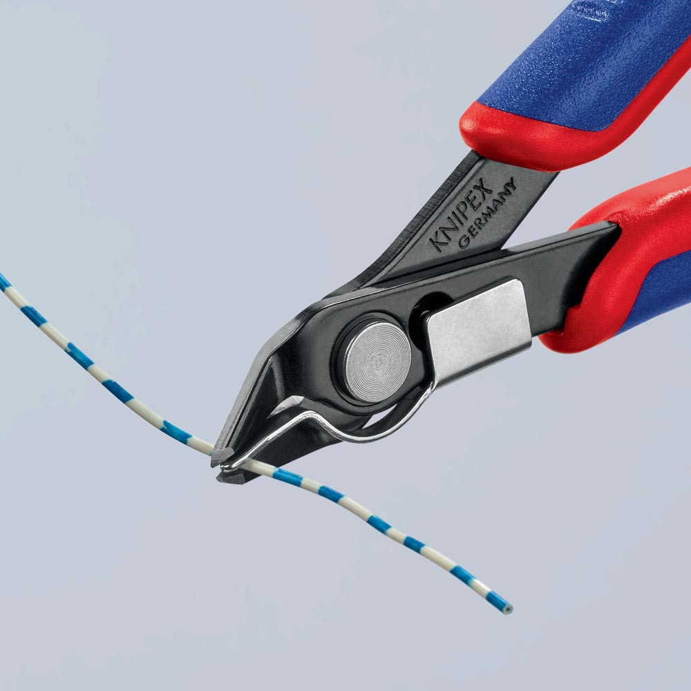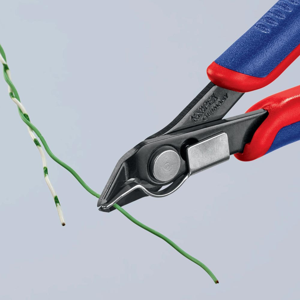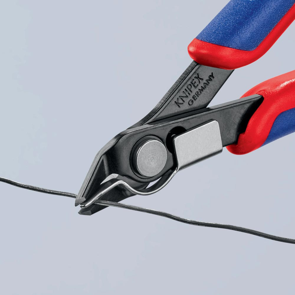 für feinste Schneidarbeiten z. B. in Elektronik und Feinmechanik · geschliffene, sehr scharfe Schneiden · Gelenk mit Edelstahl-Niet · Schneiden zusätzlich induktiv gehärtet · mit Öffnungsfeder und Öffnungsbegrenzung · Spezial-Werkzeugstahl