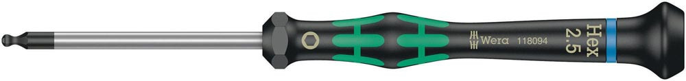 Elektronikerschraubendreher 2052 Sechskant Kugelkopf SW2,5mm Klingen-L.60mm rund CV-Molybdän nicromattiert Griff m.Drehkappe mehrkomponentig E6500936