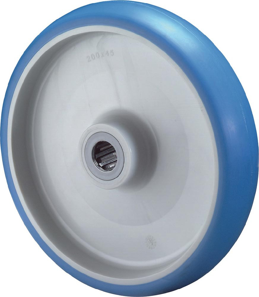 Lauffläche Polyurethan blau 85 +/-4 Shore A, Radkörper aus Kunststoff · Rollenlager