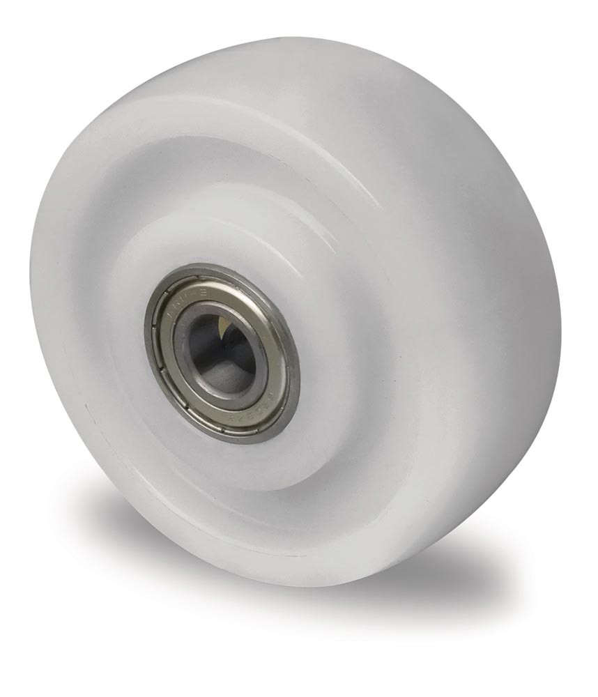Radkörper und Rad Polyamid weiß · extrem starkes Gehäuse mit gehärteter Kugelschale · Doppelkugellager · verschraubte Radachse