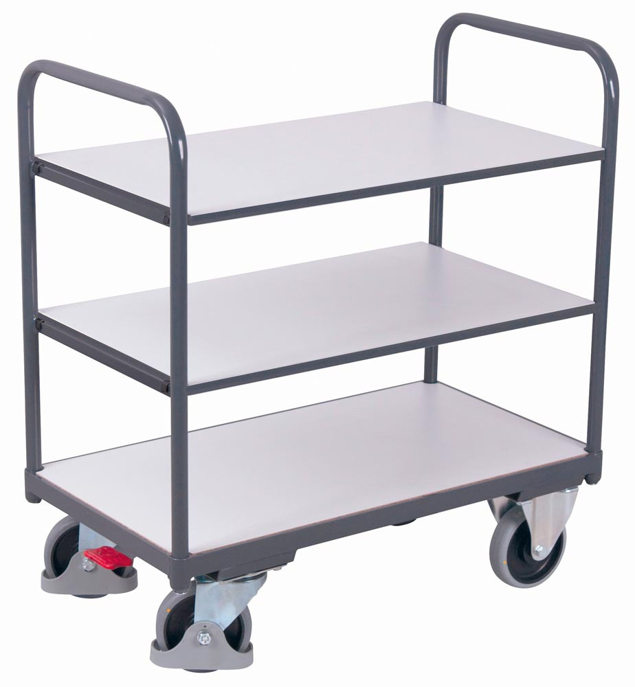 Etagenwagen, ESD, 3 Ladeflächen LxB 850x500 mm, Außenmaße LxBxH 910x500x990 mm, Traglast 250 kg E1320321