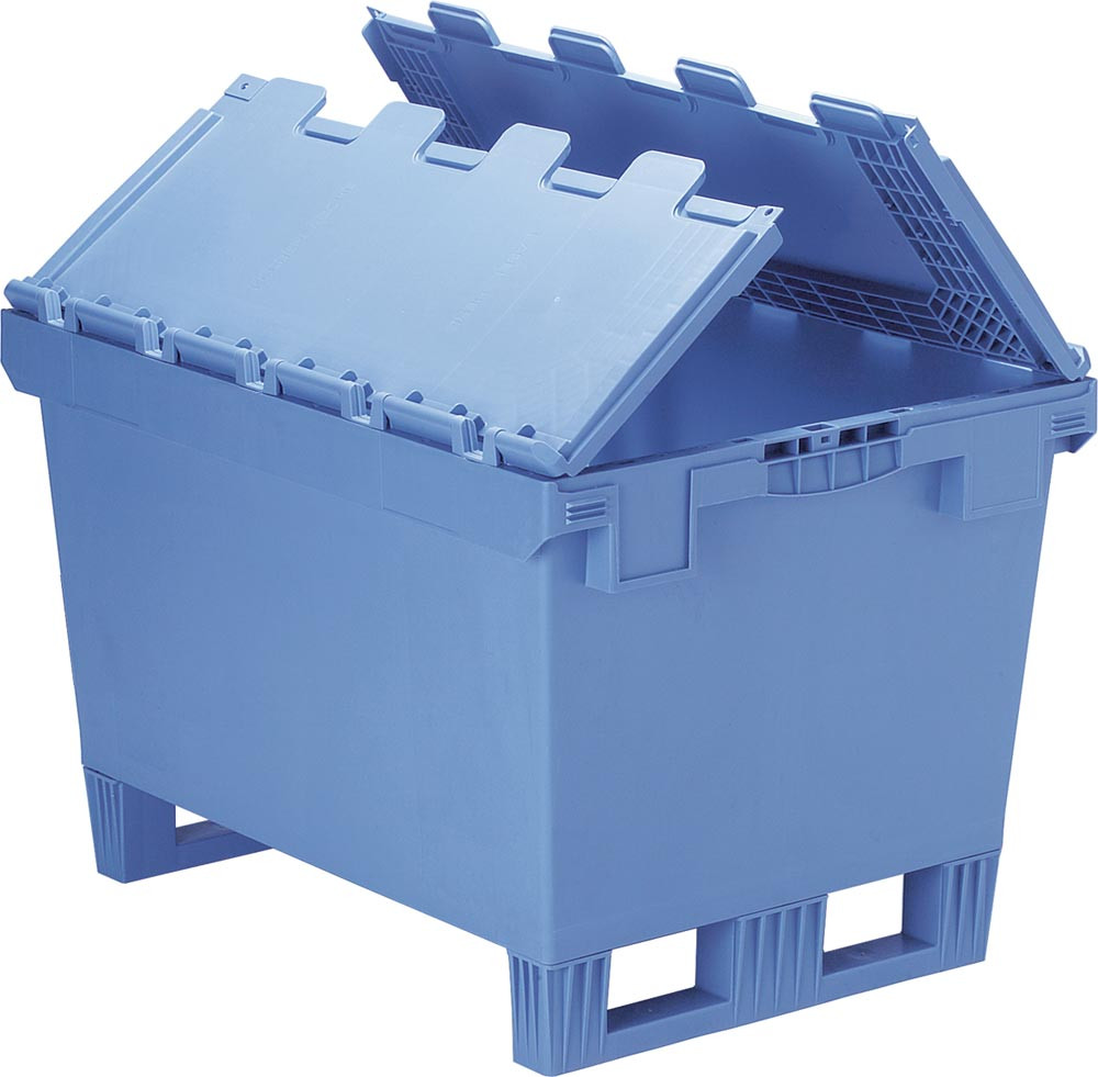 Euronorm-Mehrwegbehälter, Kufen + Deckel, Volumen 114 Liter, LxBxH 800x600x453 mm, Farbe blau E861297