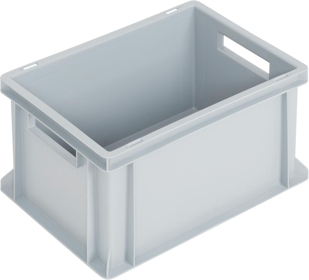 Euronormbehälter, LxBxH 400x300x220 mm, geschlossen mit Systemverbundboden, 2 Durchfassgriffe, Farbe grau