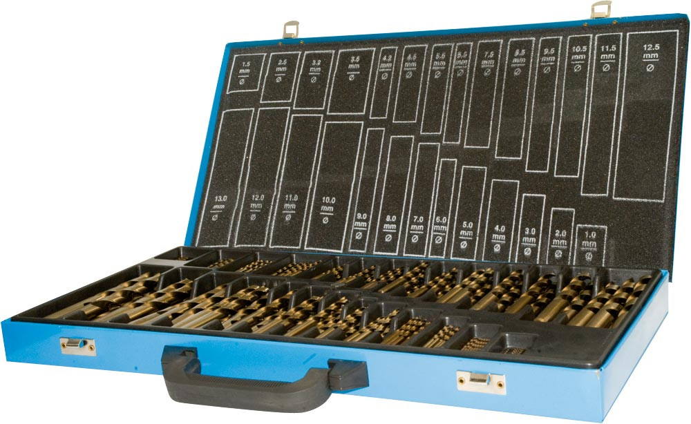 FACTOR HSS-Co Spiralb.-Satz DIN338N, geschl., Kreuzanschl., Magazin 230tlg., 1-13mm