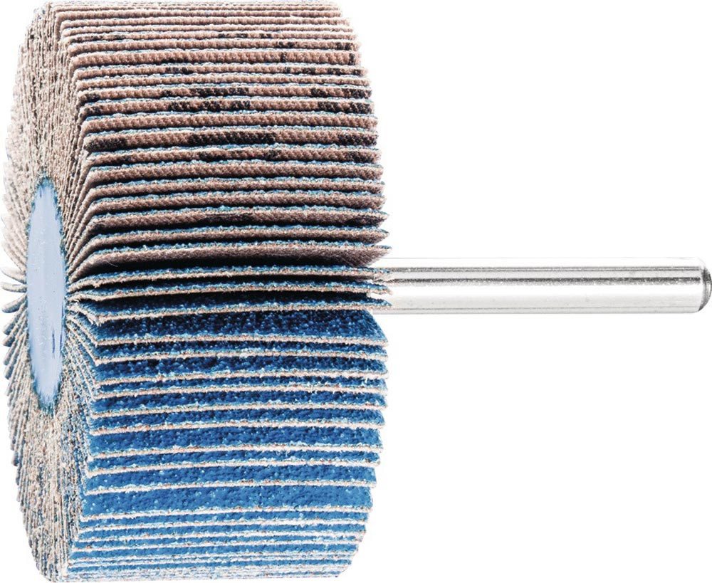 Zirkonkorund · für die Bearbeitung rostfreier Stähle und hochwarmfester Legierungen · hohe Schleifleistung · kein Zusetzen der Lamellen · für grobe Schleifaufgaben bei hoher Zerspanungsleistung und kühlem Schliff · schleifaktive Zusätze im Belag erzielen eine deutlich höhere Abtragsleistung, verhindern das Zusetzen und bewirken einen kühleren Schliff · Schaft-Ø 6 mm