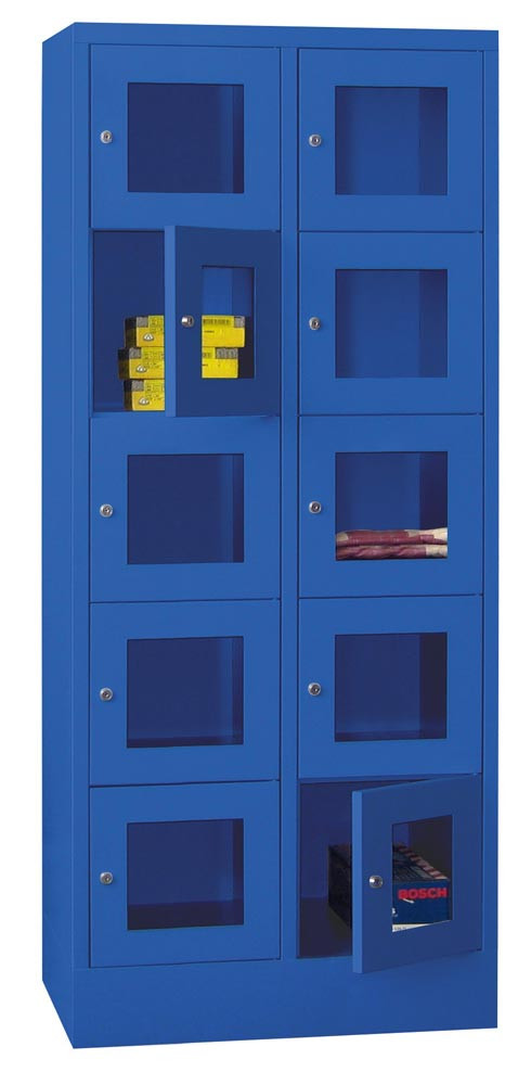 Fächerschränke mit Sichtfenstertüren, 2x5 Fächer, Schloss, BxTxH 800x500x1850 mm, Abt. B 400 mm, RAL 5010