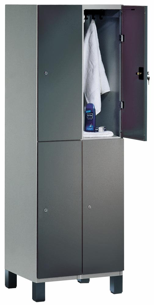 Fächerschrank, 2x2 Fächer, Abt. B 300 mm, Selbstbelüftungskonzept, BxTxH 600x525x1980 mm, RAL 7035/5010 E1980213