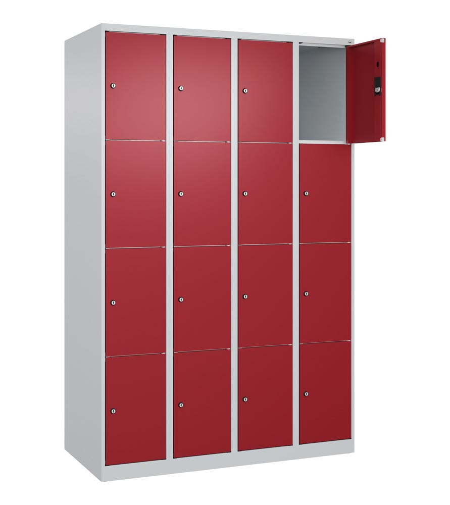 Fächerschrank, BxTxH 1200x500x1850 mm, 4x4 Fächer, Abt.B 300 mm, bodenstehend, Schloss, glatte Türen, Farbwahl