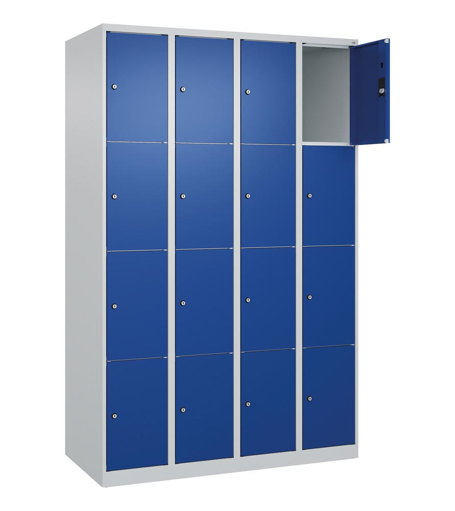 Fächerschrank, BxTxH 400x500x1850 mm, 1x4 Fächer, Abt.B 400 mm, bodenstehend, Schloss, glatte Türen, RAL 7035/5010 E6479270