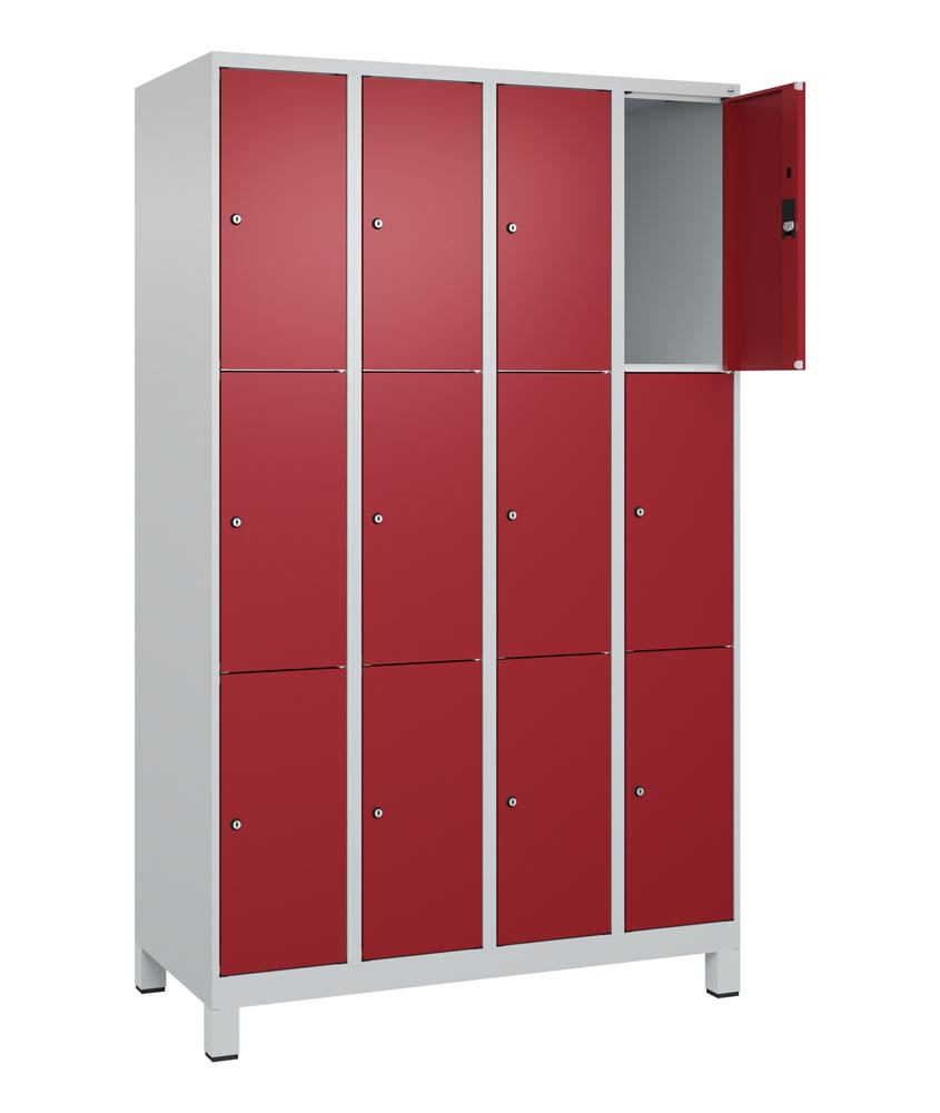 Fächerschrank, BxTxH 1200x500x1950 mm, 4x3 Fächer, Abt.B 300 mm, Füße, Schloss, glatte Türen, Farbwahl