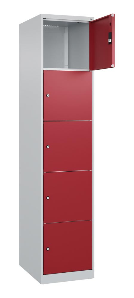 Fächerschrank, BxTxH 300x500x1850 mm, 1x5 Fächer, Abt.B 300 mm, bodenstehend, Schloss, glatte Türen, Farbwahl E6479331