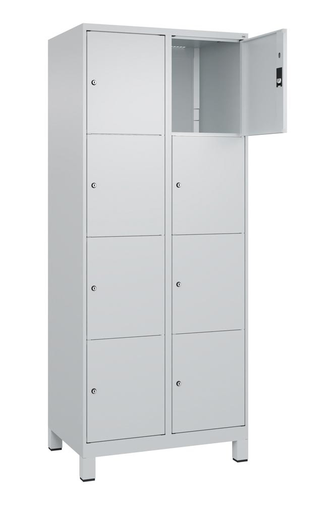 Fächerschrank, BxTxH 800x500x1950 mm, 2x4 Fächer, Abt.B 400 mm, Füße, Schloss, glatte Türen, RAL 7035
