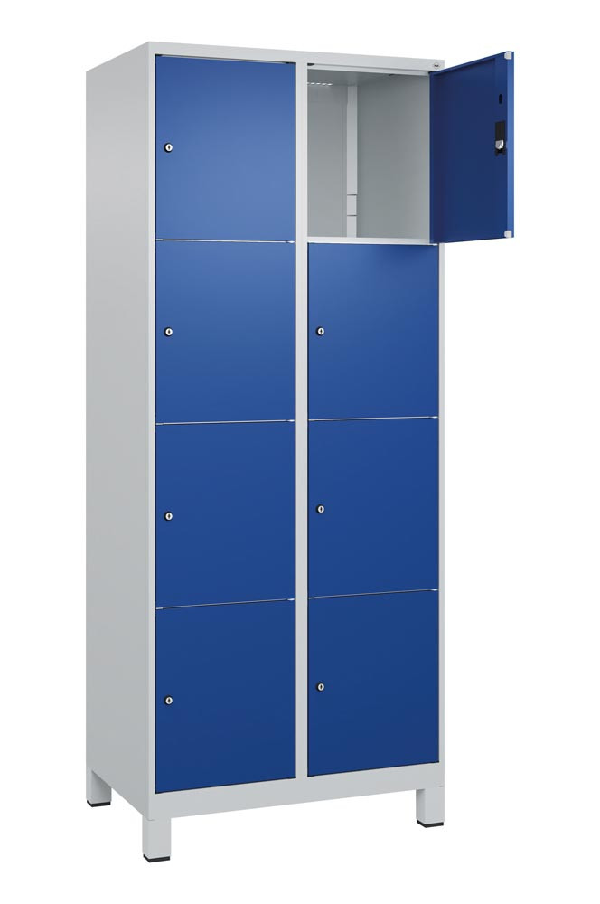 Fächerschrank, BxTxH 300x500x1950 mm, 1x4 Fächer, Abt.B 300 mm, Füße, Schloss, glatte Türen, RAL 7035/5010 E6479288