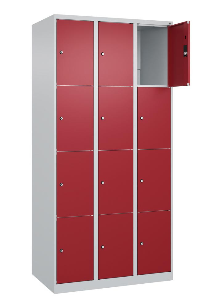 Fächerschrank, BxTxH 900x500x1850 mm, 3x4 Fächer, Abt.B 300 mm, bodenstehend, Schloss, glatte Türen, Farbwahl