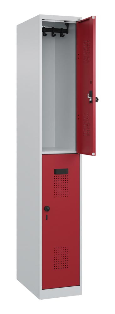 Fächerschrank, Stahl, doppelstöckig, 1x2 Fächer, Abt.B 300 mm, bodenstehend, Drehriegel, BxTxH 300x500x1850 mm, Farbwahl