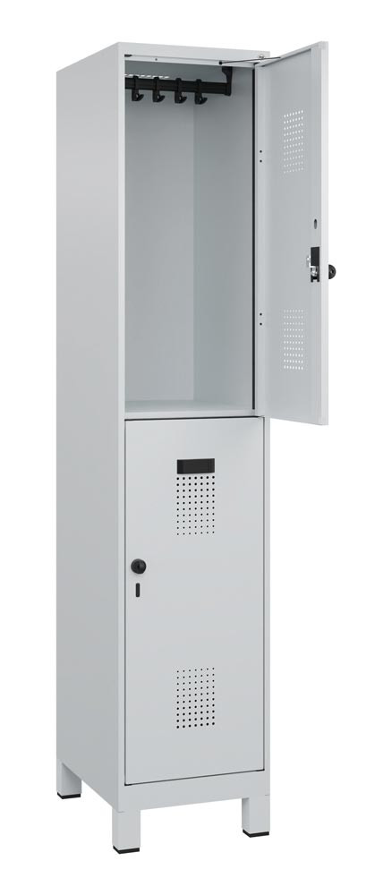 Fächerschrank, Stahl, doppelstöckig, 1x2 Fächer, Abt.B 400 mm, Füße, Drehriegel, BxTxH 400x500x1950 mm, RAL 7035 E6479416