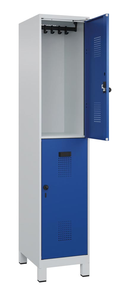 Fächerschrank, Stahl, doppelstöckig, 1x2 Fächer, Abt.B 400 mm, Füße, Drehriegel, BxTxH 400x500x1950 mm, RAL 7035/5010 E6479417
