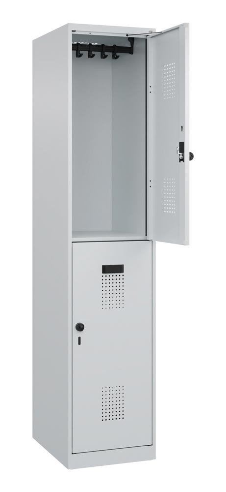 Fächerschrank, Stahl, doppelstöckig, 1x2 Fächer, Abt.B 400 mm, bodenstehend, Drehriegel, BxTxH 400x500x1850 mm, RAL 7035 E6479395