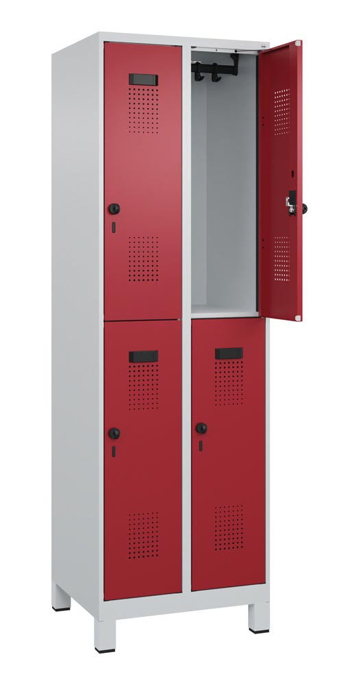 Fächerschrank, Stahl, doppelstöckig, 2x2 Fächer, Abt.B 300 mm, Füße, Drehriegel, BxTxH 600x500x1950 mm, Farbwahl