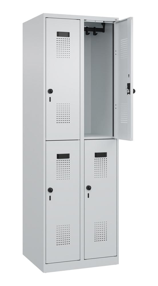 Fächerschrank, Stahl, doppelstöckig, 1x2 Fächer, Abt.B 400 mm, bodenstehend, Drehriegel, BxTxH 400x500x1850 mm, RAL 7035 E6479395
