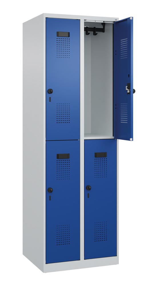 Fächerschrank, Stahl, doppelstöckig, 1x2 Fächer, Abt.B 300 mm, bodenstehend, Drehriegel, BxTxH 300x500x1850 mm, RAL 7035/5010 E6479393