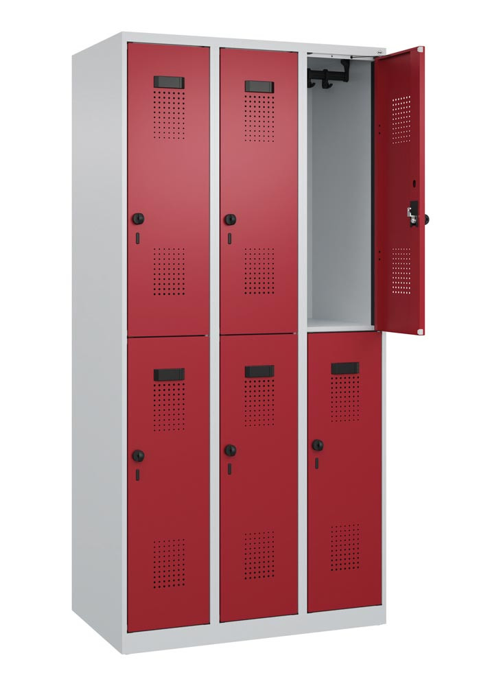 Fächerschrank, Stahl, doppelstöckig, 3x2 Fächer, Abt.B 300 mm, bodenstehend, Drehriegel, BxTxH 900x500x1850 mm, Farbwahl