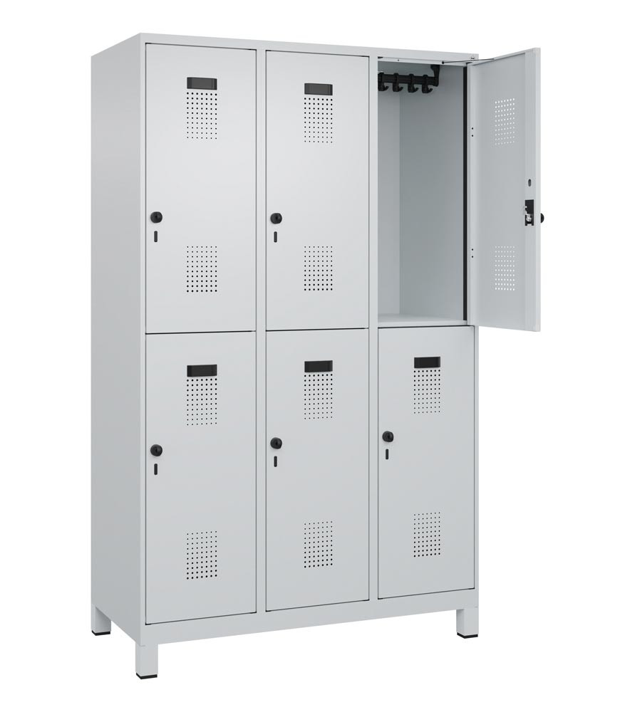 Fächerschrank, Stahl, doppelstöckig, 3x2 Fächer, Abt.B 400 mm, Füße, Drehriegel, BxTxH 1200x500x1950 mm, RAL 7035
