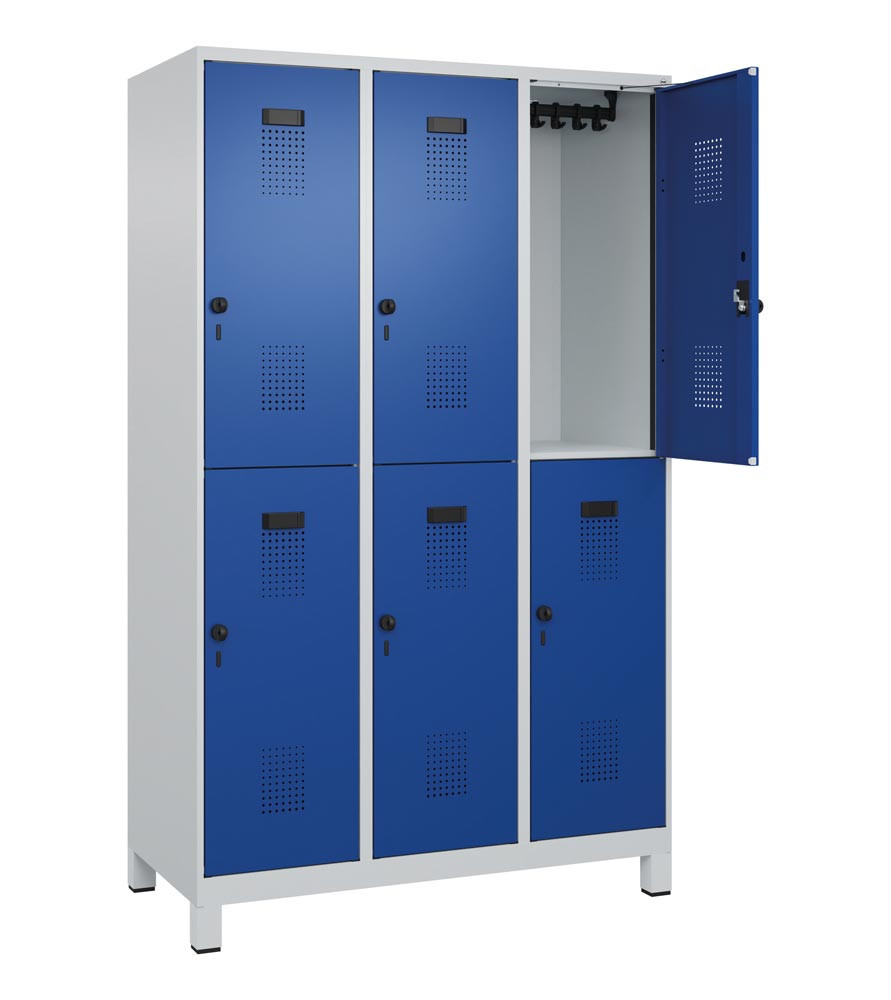 Fächerschrank, Stahl, doppelstöckig, 3x2 Fächer, Abt.B 400 mm, Füße, Drehriegel, BxTxH 1200x500x1950 mm, RAL 7035/5010