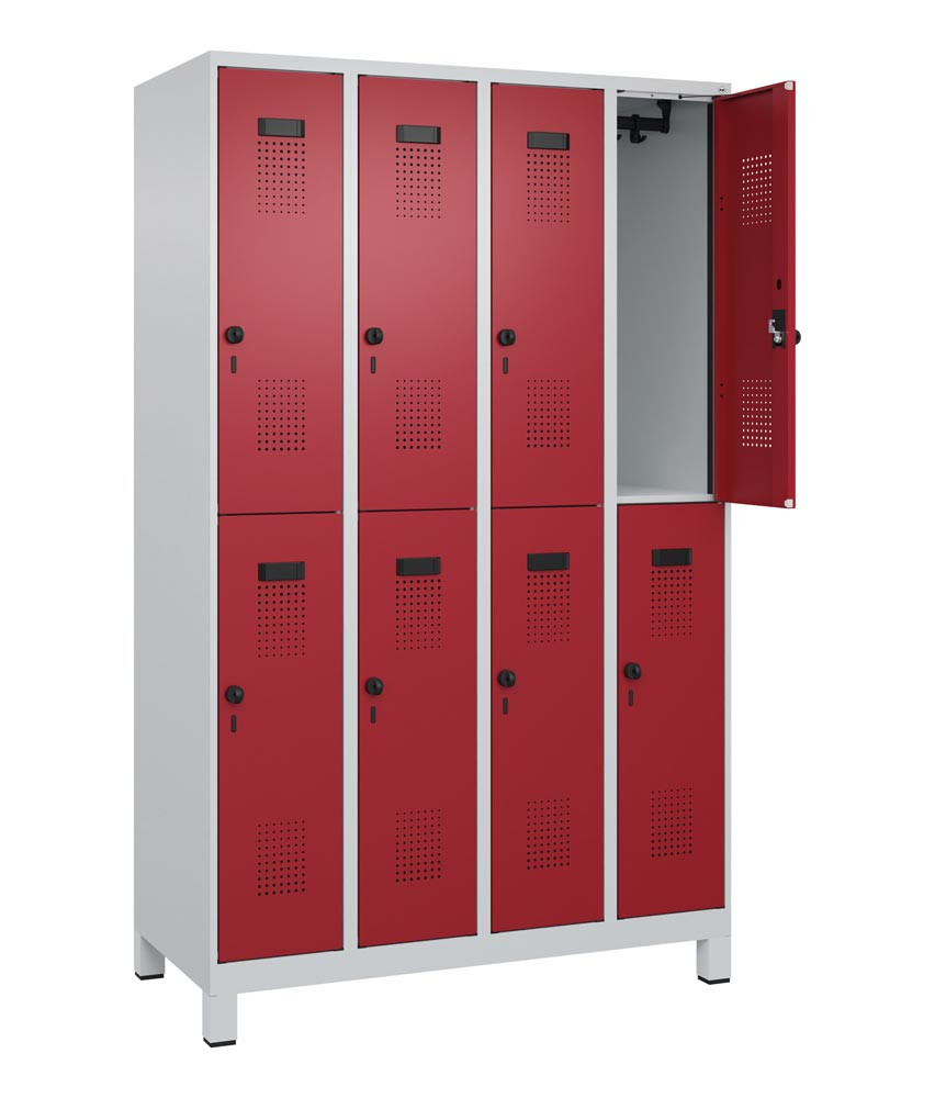 Fächerschrank, Stahl, doppelstöckig, 4x2 Fächer, Abt.B 300 mm, Füße, Drehriegel, BxTxH 1200x500x1950 mm, Farbwahl