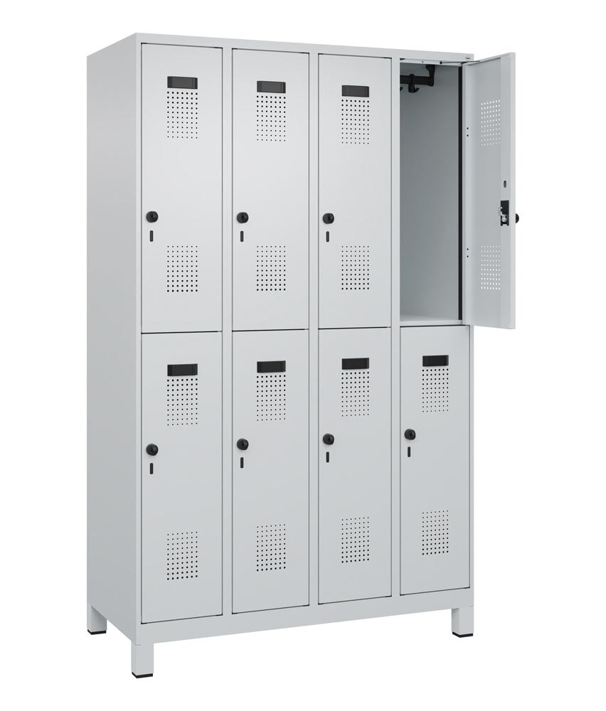 Fächerschrank, Stahl, doppelstöckig, 4x2 Fächer, Abt.B 300 mm, Füße, Drehriegel, BxTxH 1200x500x1950 mm, RAL 7035