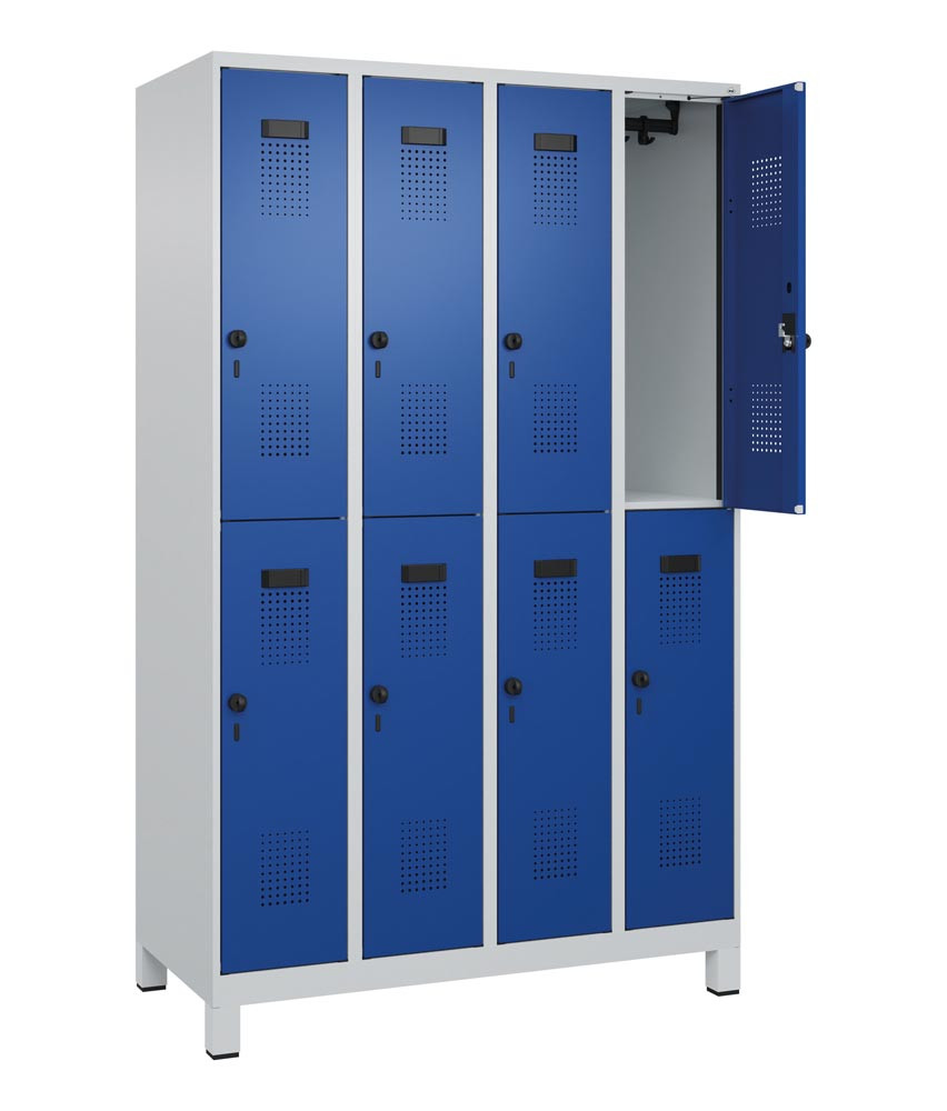 Fächerschrank, Stahl, doppelstöckig, 4x2 Fächer, Abt.B 300 mm, Füße, Drehriegel, BxTxH 1200x500x1950 mm, RAL 7035/5010