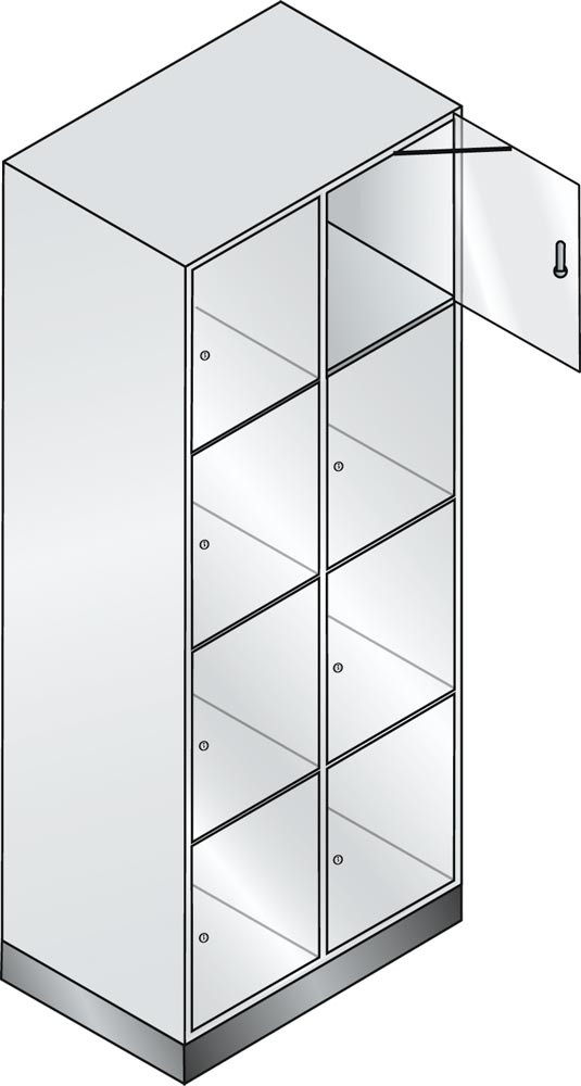 Fächerschrank mit Acrylglastüren, 2x4 Fächer 380 mm, BxTxH 820x500x1750 mm, Schloss, RAL 7035 E1988965