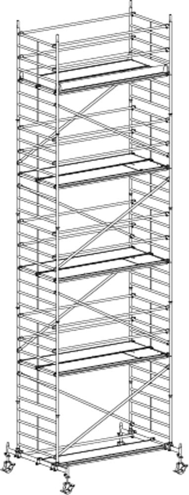 Fahrgerüst, Aluminium, mit Fahrtraverse, Arbeitsfläche 1,30x2,95 m, Standhöhe 8,60 m, Gerüsthöhe 9,82 m, Gewicht 494,8 kg